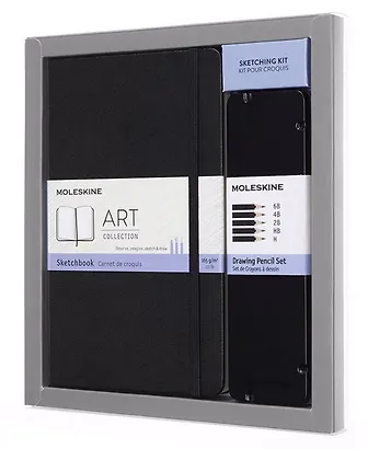 Набор Moleskine, Молескин Art Collection пенал с черногр.карандашами/блокнот Large нелинованный черный