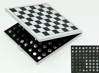 Набор настольных игр, на магнитной доске, в набор входит: шахматы, нарды, шашки, 2 игральные кости. материал: алюминий,пластик (10.5*10.2*1.1)
