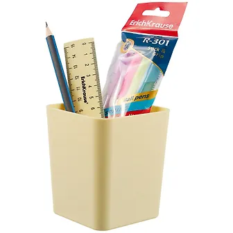 Настольный набор очень понравился. Хороший четырехугольный стаканчик с плавными углами, причём в интернет-магазине "Китай-город" есть много вариантов цветовой расцветки этого стаканчика, который кстати можно использовать не только для хранения канцелярских принадлежностей, но и для хранения любых других вещей. В набор входят отличного качества ручки, карандаш и линейка. Выглядит набор очень аккуратно и презентабельно. Подойдёт под любой интерьер.