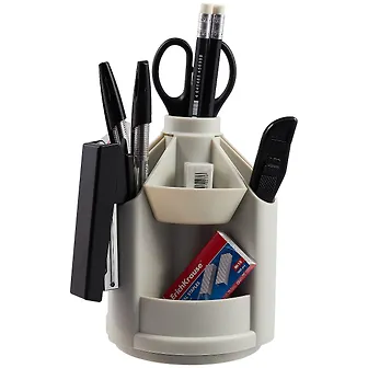 Готовый набор с наполнением. Подставка оснащена вращающимся механизмом и изготовлена из высококачественного пластика. В комплекте 12 предметов: 2 ручки, 2 карандаша, линейка, точилка, ластик, 30 скрепок, степлер №10, 1000 скоб, ножницы, нож канцелярский. Наполнение может отличаться от представленного.