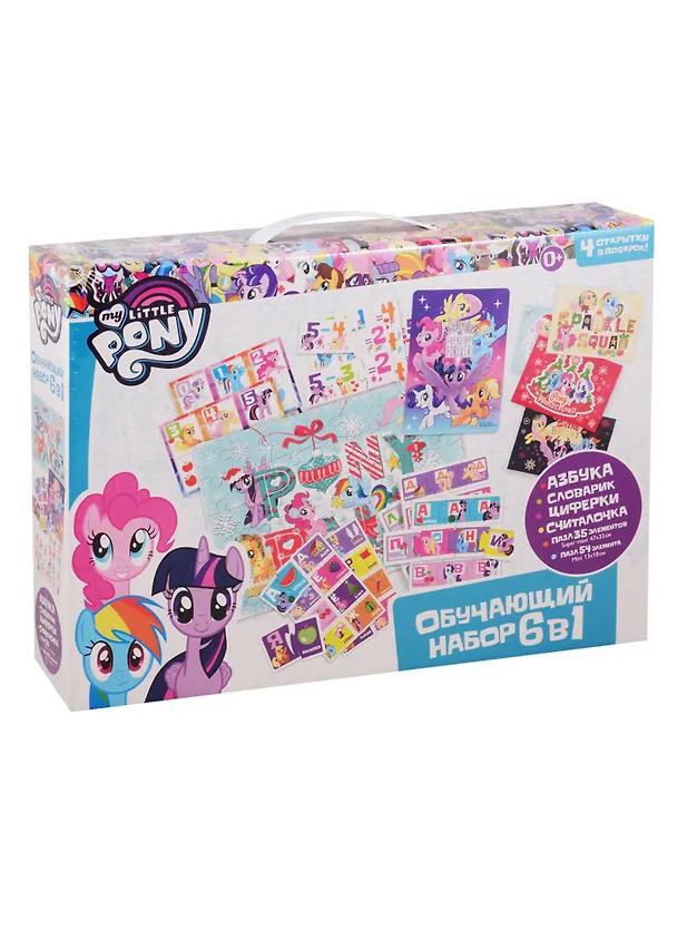 Специально для вашей маленькой принцессы мы придумали и выпустили уникальный обучающий набор «6в1»! В него входят интересные красочные пазлы с любимыми персонажами мультфильма My Little Pony, а также вы найдёте целый ряд развивающих и обучающих настольных игр, благодаря которым ребёнок познакомится с алфавитом и счетом. Мини-пазлы помогут сделать чудесную встречу с любимыми героями незабываемой! Обучающий набор «6в1» – это не только отличная возможность сделать окружающий мир ярче, но и самый лучший способ увлечь ребёнка, рассказав ему в игре о пока ещё новых для него, но очень нужных и увлекательных вещах!