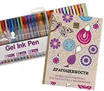 Комплект из 30 цветных гелевых ручек и раскраски-антистресса "Драгоценности" для творчества и вдохновения.