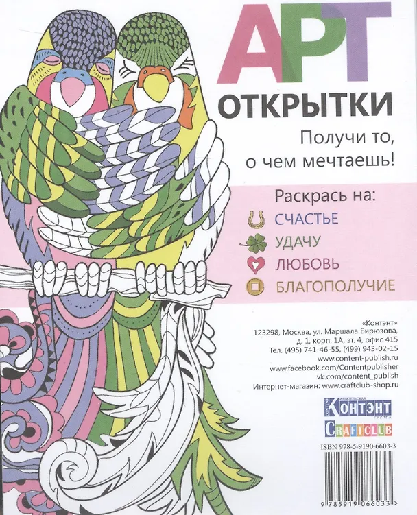Набор открыток для раскрашивания Арт - открытки. Раскрась на счастье, удачу, любовь, благопол