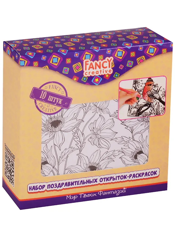 Набор открыток-раскрасок Флора (FD080281) (10шт) (3+) (коробка) (FANCY CREATIVE)