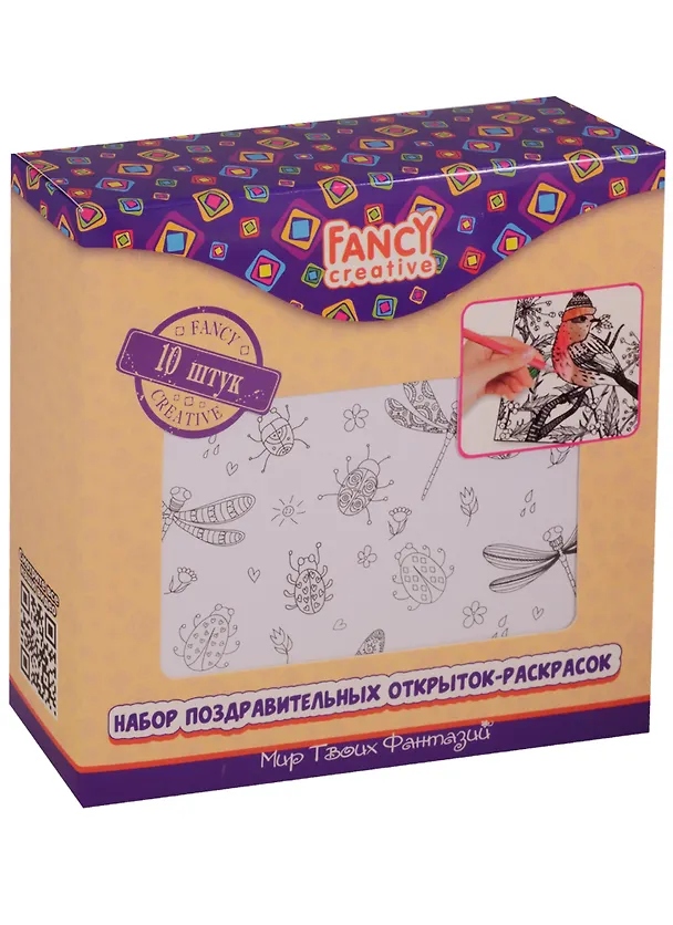 Набор открыток-раскрасок Веселые принты (FD080283) (10шт) (3+) (коробка) (FANCY CREATIVE)