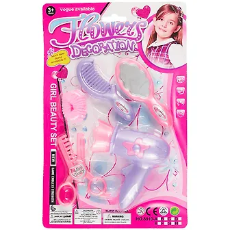 Очень миленький набор для ребенка! Можно играть в салоны красоты и во все прочее. Игрушки хорошего качества, выглядят ярко и приятно блестят. Резиночка хорошая, даже держит волосы. Поверхность зеркальца ненастоящая, искажает отражение, как и на большинстве подобных игрушек. Зубчики на расческе во время игры не ломались. Рекомендую к приобретению данного товара.