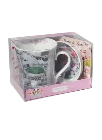 Набор Парижские цветы (кружка 300мл, крышка-блюдце, подставка под кружку) (M0857NC/3-FdP)