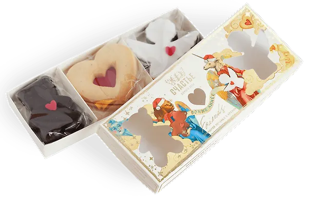 Набор домашнего печенья ручной работы в форме символов СЧАСТЬЯ. Ангел подарит вдохновение, Тедди – не даст в обиду, а Сердце – наполнит любовью... Друзья собрались вместе, чтобы стать особенным подарком для проявления ваших теплых чувств самым близким.