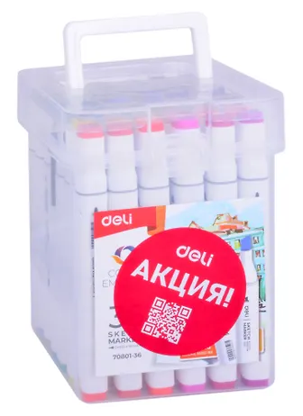Набор перманентных маркеров для скетчинга Deli 36 цветов, двойной наконечник, пластиковая упаковка, Deli