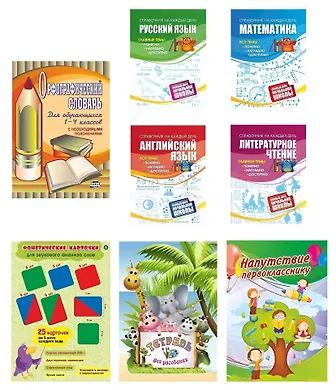 - Типы материала Рабочая тетрадь, Словарь, Справочник, Комплект, Карточки