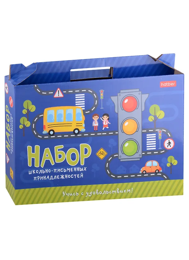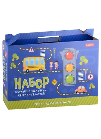 Набор школьно-письменных и канцелярских принадлежностей включает в себя 27 предметов первой необходимости первоклассника и соответствует заявленным требованиям на начальном этапе школьной программы. К набору прилагается список, информирующий о его содержимом.Упаковка: красочно оформленная подарочная коробка-портфель из плотного картона в стрейч-пленке.Набор подходит для выпускников детских садов и первоклассников. Наполнение набора:Доска для лепки-1 шт.Клей-карандаш-1 шт.Ручка шариковая синяя-2 шт.Карандаш чернографитный-2 шт.Точилка-1 шт.Пластилин-1 шт.Набор цветных карандашей-1 шт.Набор фломастеров-1 шт.Ножницы-1 шт. Ластик-1 шт.Краски акварельные, без кисти-1 шт.Альбом для рисования-1 шт.Тетради в клетку-5 шт.Тетради в косую линию-5 шт.Набор бумаги цветной-1 шт.Блокнот для записей-1 шт.Кисть-1 шт.