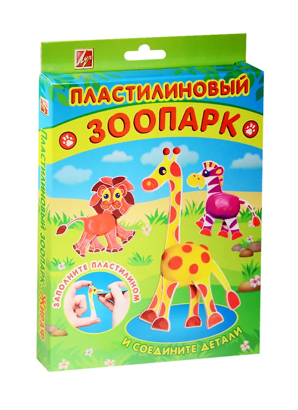Набор Пластилиновый зоопарк Жираф (25С 1540-08) (пластмасс. дет. д/созд. обитателей Зоопарка(жираф/лев/зебра)+мягк. воск. пластилин/6цв.+стек) (3+) (упаковка) (Луч)