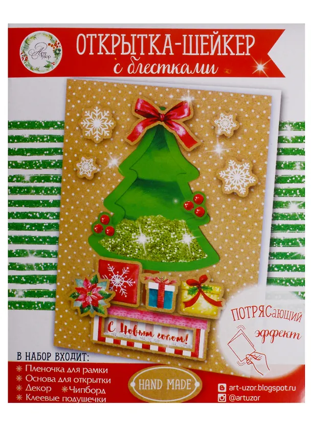 Набор по созданию открытки-шейкер Новогодняя елочка (11х15 см) (2142056) (3+) (упаковка) (Арт Узор)
