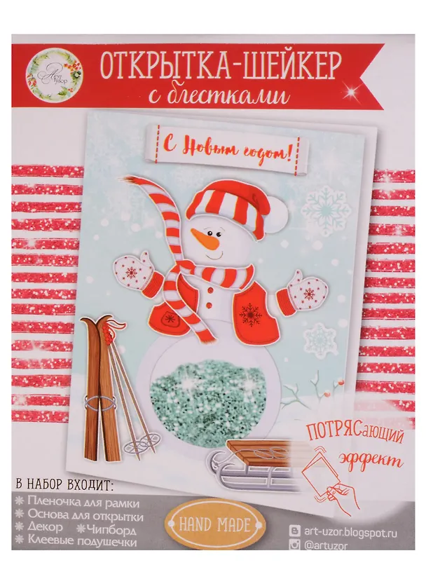 Набор по созданию открытки-шейкер Веселый снеговик (11х15 см) (2142057) (3+) (упаковка) (Арт Узор)