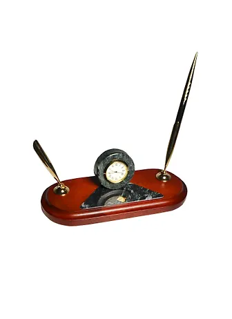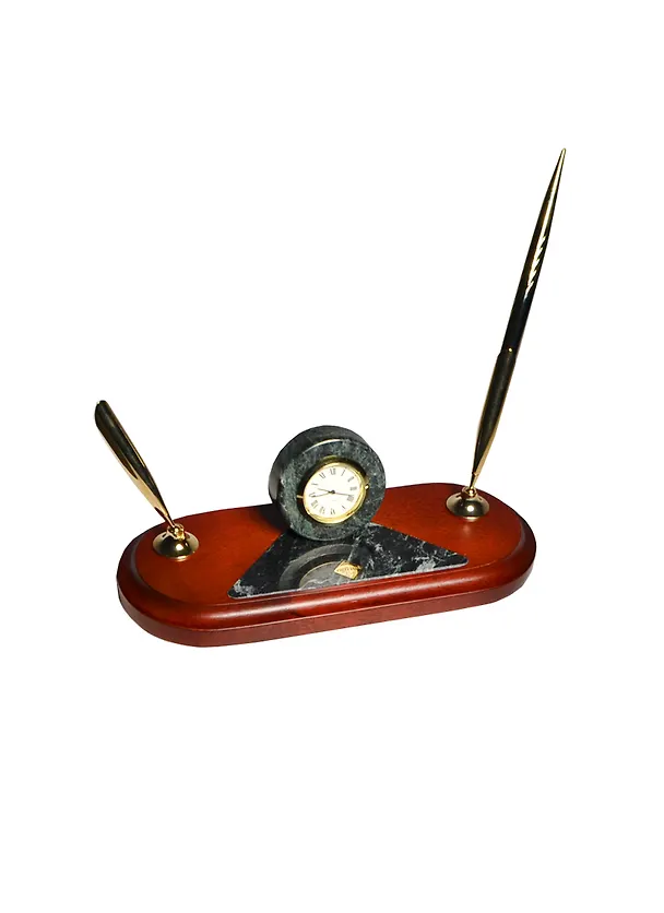 Набор подарочный "Antique" с часами и 2-мя ручками, темно-зеленый мрамор и натуральное дерево (махагон) с золотой отделкой, Protege.