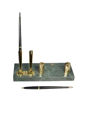 Набор подарочный "Antique" с подставкой для визиток и 2-мя ручками, темно-зеленый мрамор с золотой отделкой, Protege.