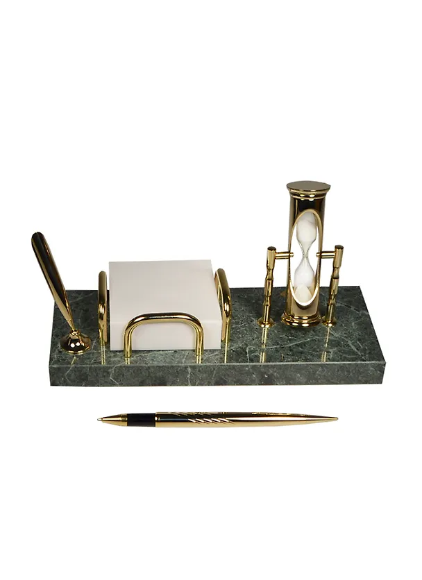Набор подарочный "Antique" с подставкой под бумажный блок, песочными часами на 2 минуты и ручкой, темно-зеленый мрамор, Protege.