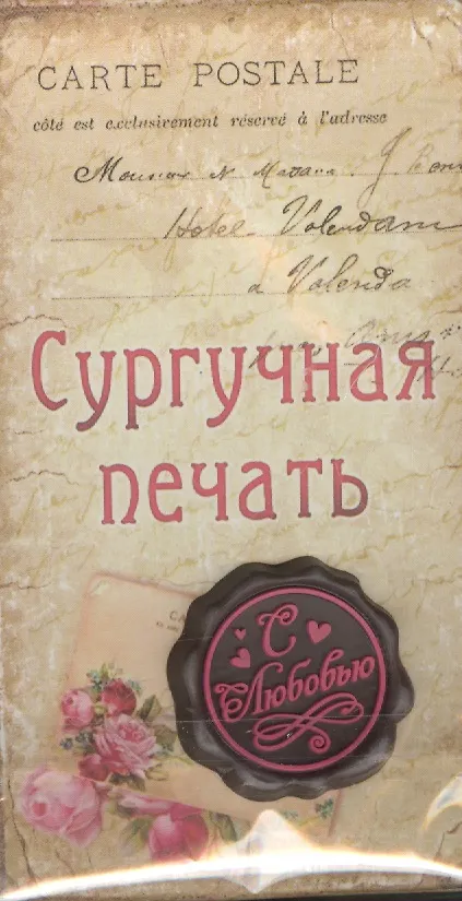Сургучная печать – это незаменимый инструмент декорирования конвертов, приглашений, открыток, дипломов и т.п., который придаст им винтажный шик. Набор состоит из металлической печати на цепочке и палочки сургуча. Для удобства использования в сургуче предусмотрен фитиль, с помощью которого удобно его плавить. Для того чтобы поставить печать, необходимо поджечь фитиль, накапать необходимое количество сургуча на декорируемую поверхность, дать ему остыть (15-30 секунд), затем с усилием до конца отжать печать и резко убрать ее.