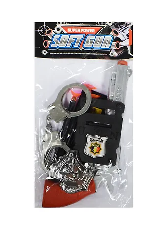 Игровой набор «Полиция» включает аксессуары, надев которые, юный борец за справедливость почувствует себя настоящим служителем закона! В комплект входит игрушечное оружие — револьвер и пластиковый ножик, наручники для задержания преступников, часы, чтобы успевать на важные задания, фонарик, запас зарядов и, конечно, профессиональный значок.