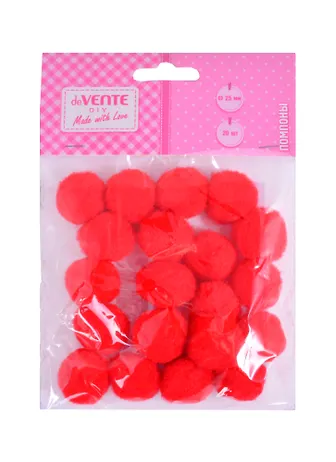 Хороший симпатичный набор помпонов прекрасного красного цвета, мягкие, но плотные и достаточно большие, поэтому отлично подходят для развивающих игр и заданий и с маленькими детьми. Пробовали эти помпоны в аппликациях - можно и наклеить, и затем отклеить, если очень нужно, помпоны от этого не развалятся, можно лишь срезать например клей с того бока, где он был, и все ок.