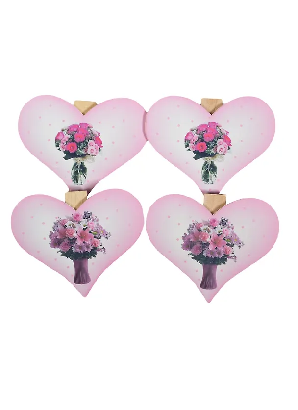 Набор Прищепки декор Сердца с букетом (125106) (4шт) (упаковка)
