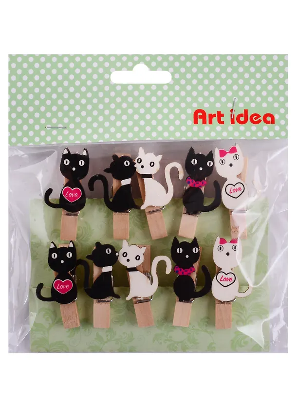 Набор прищепок Черные коты белые кошки (10 шт.) (упаковка) (pr-001)