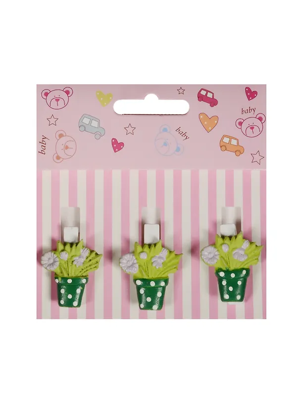 Набор прищепок декоративных, 3 шт, полистоун,горшочек с цветами