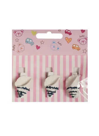 Набор остоит из 3-х декоративных прищепок. Изделия используются для развешивания стикеров на веревке, маленьких игрушек, а оригинальность и веселые цвета прищепок будут радовать глаз и поднимут настроение. Размер прищепки: 3,5х2,5 см.