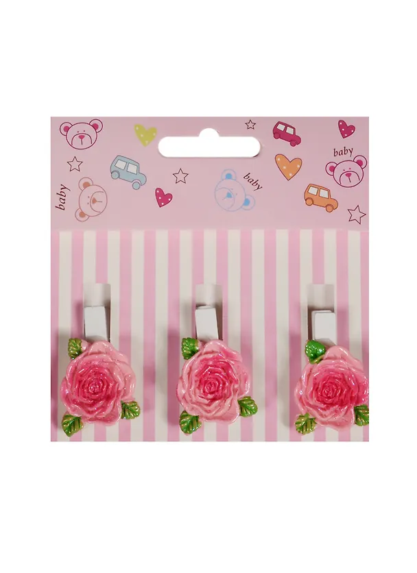 Набор остоит из 3-х декоративных прищепок. Изделия используются для развешивания стикеров на веревке, маленьких игрушек, а оригинальность и веселые цвета прищепок будут радовать глаз и поднимут настроение. Размер прищепки: 3,5х2,5 см.
