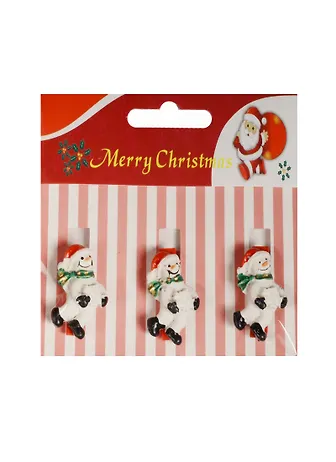 Набор прищепок декоративных, 3 шт, полистоун,снеговик