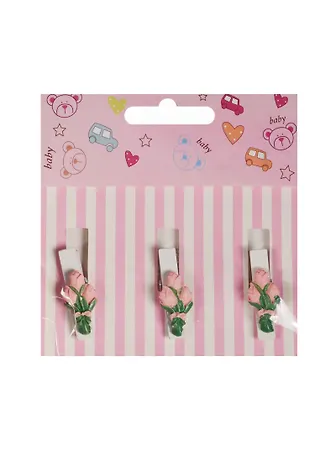 Набор прищепок декоративных, 3 шт, полистоун,тюльпан розовый