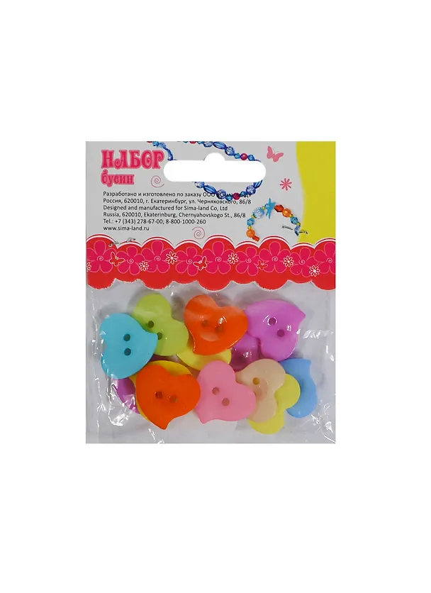 Набор пуговиц для поделок и декор. Сердца Дали (511566) (20гр) (размер 1шт/2,0х2,0) (разноцв.) (упаковка)