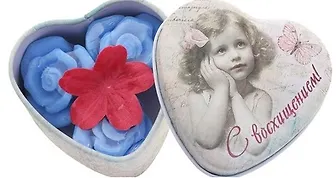 Набор С восхищением в шкатулке сердце малое (571073) (7х7х3,7) (3шт. мыльные лепестки, цветочек)