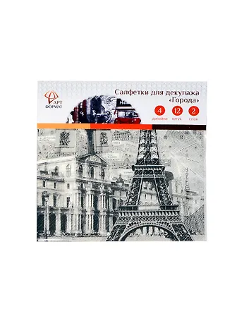 Набор салфеток д/декупажа Города (AF05-041-06) (33х33см) (12шт) (4 дизайна) (2 слоя) (упаковка)