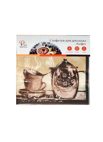 Набор салфеток д/декупажа Кофе (AF05-041-05) (33х33см) (12шт) (4 дизайна) (2 слоя) (упаковка)