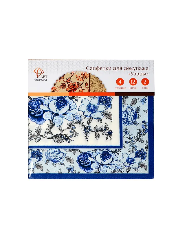 Набор салфеток д/декупажа Узоры (AF05-041-03) (33х33см) (12шт) (4 дизайна) (2 слоя) (упаковка)