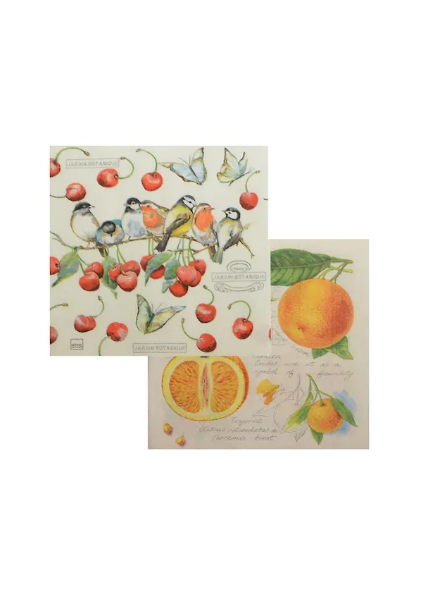 Набор салфеток для Декупажа Птицы/Фрукты (211530/SDL993000) (2шт) (упаковка)