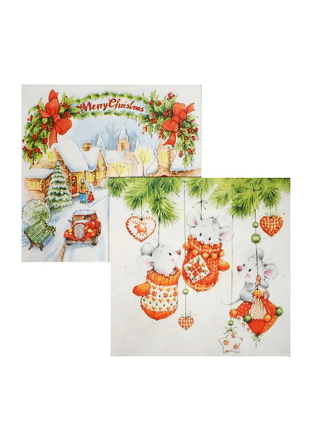 Салфетки для декупажа на новогоднюю и зимнюю тему идеально подходят для декорирования украшений, ёлочных игрушек, подарков и праздничной упаковки к Новому году и Рождеству!