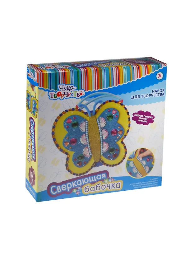 Набор Сделай сам Сумочка Сверкающая бабочка (01767) (дет. из EVA+пласт. ручка+бисер+пайетки+стразы+нитки+шнурки+пинцет+проволока) (Чудо-тв.) (7+) (коробка)