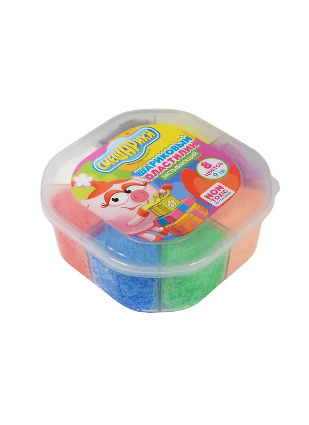 .Малышу обязательно понравится несложный и увлекательный процесс лепки, творить из шарикового пластилина легко и приятно - его текстура способствует развитию тактильных ощущений малыша и превосходно снимает стресс. На воздухе пластилин застывает за 4 часа, но если герметично упаковать его, он не потеряет свои пластичные свойства.