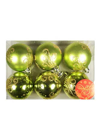 Набор шаров (6шт) (6см) Салатовый с золотым узором пластик (35518)