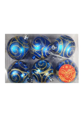 Набор шаров (6шт) (6см) Синие с золотым и белым узором пластик (35532)