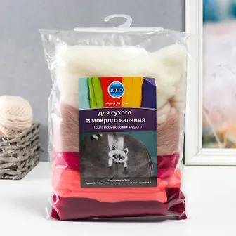 Шерсть RTO не линяет при валянии и последующей стирке, легко расчесывается и разделяется на пряди. Готовые изделия из шерсти RTO хорошо поддаются покраске и тонированию. Благодаря удобной упаковке можно рассмотреть шерсть внимательнее и убедится в ее качестве, а также подобрать необходимый цвет из широкой цветовой гаммы.