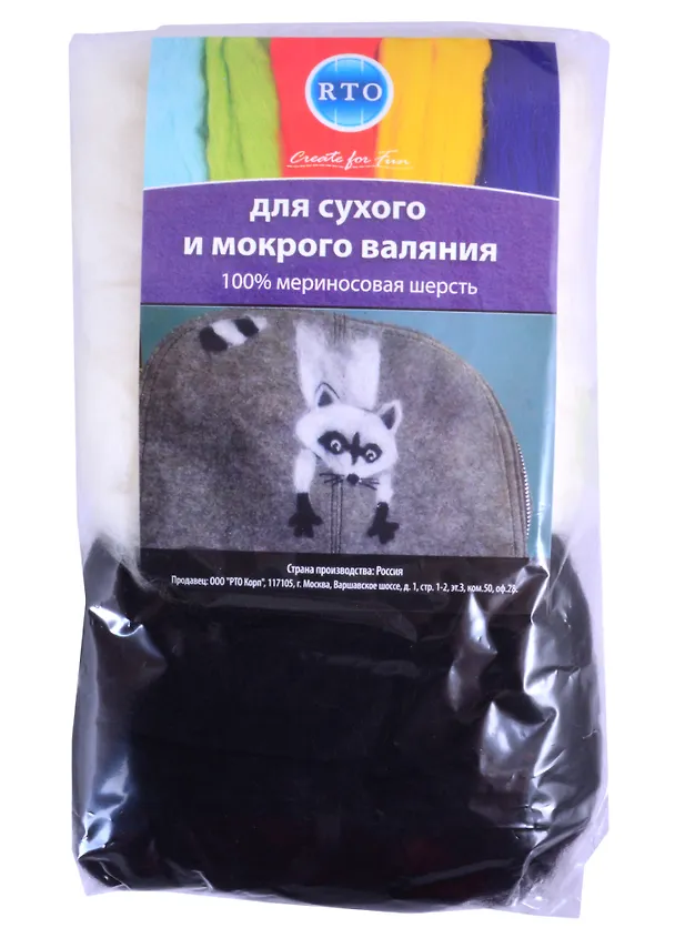 Шерсть RTO не линяет при валянии и последующей стирке, легко расчесывается и разделяется на пряди. Готовые изделия из шерсти RTO хорошо поддаются покраске и тонированию. Благодаря удобной упаковке можно рассмотреть шерсть внимательнее и убедится в ее качестве, а также подобрать необходимый цвет из широкой цветовой гаммы.