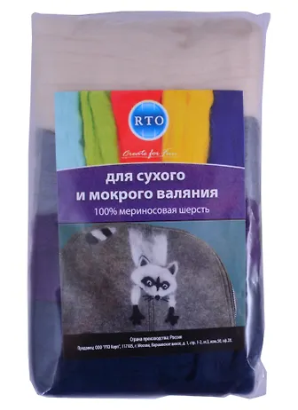 Шерсть RTO не линяет при валянии и последующей стирке, легко расчесывается и разделяется на пряди. Готовые изделия из шерсти RTO хорошо поддаются покраске и тонированию. Благодаря удобной упаковке можно рассмотреть шерсть внимательнее и убедится в ее качестве, а также подобрать необходимый цвет из широкой цветовой гаммы.