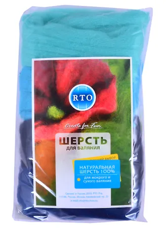 Шерсть RTO не линяет при валянии и последующей стирке, легко расчесывается и разделяется на пряди. Готовые изделия из шерсти RTO хорошо поддаются покраске и тонированию. Благодаря удобной упаковке можно рассмотреть шерсть внимательнее и убедится в ее качестве, а также подобрать необходимый цвет из широкой цветовой гаммы.