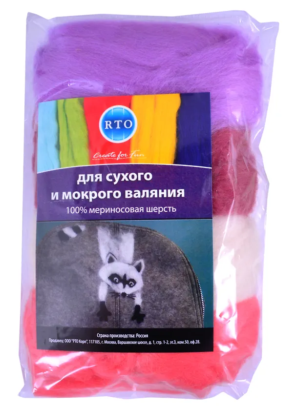 Шерсть RTO не линяет при валянии и последующей стирке, легко расчесывается и разделяется на пряди. Готовые изделия из шерсти RTO хорошо поддаются покраске и тонированию. Благодаря удобной упаковке можно рассмотреть шерсть внимательнее и убедится в ее качестве, а также подобрать необходимый цвет из широкой цветовой гаммы.