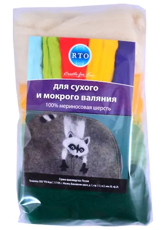 Шерсть RTO не линяет при валянии и последующей стирке, легко расчесывается и разделяется на пряди. Готовые изделия из шерсти RTO хорошо поддаются покраске и тонированию. Благодаря удобной упаковке можно рассмотреть шерсть внимательнее и убедится в ее качестве, а также подобрать необходимый цвет из широкой цветовой гаммы.
