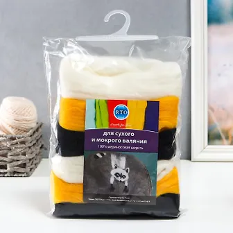 Шерсть RTO не линяет при валянии и последующей стирке, легко расчесывается и разделяется на пряди. Готовые изделия из шерсти RTO хорошо поддаются покраске и тонированию. Благодаря удобной упаковке можно рассмотреть шерсть внимательнее и убедится в ее качестве, а также подобрать необходимый цвет из широкой цветовой гаммы.