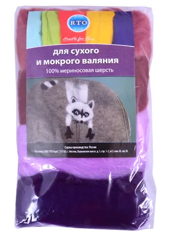 Шерсть RTO не линяет при валянии и последующей стирке, легко расчесывается и разделяется на пряди. Готовые изделия из шерсти RTO хорошо поддаются покраске и тонированию. Благодаря удобной упаковке можно рассмотреть шерсть внимательнее и убедится в ее качестве, а также подобрать необходимый цвет из широкой цветовой гаммы.